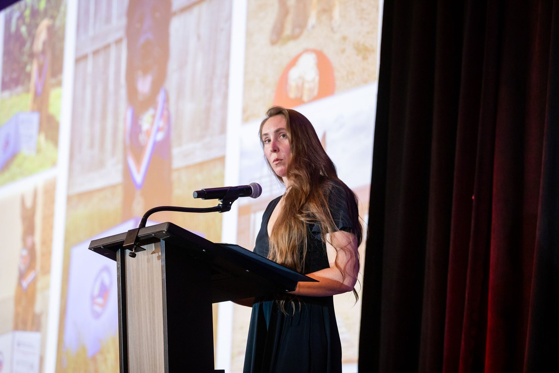 Suzette – who served as a dog handler with the US Marine Corps – took to the stage to tell the story of how US War Dogs’ MWD Service Award came to be.
