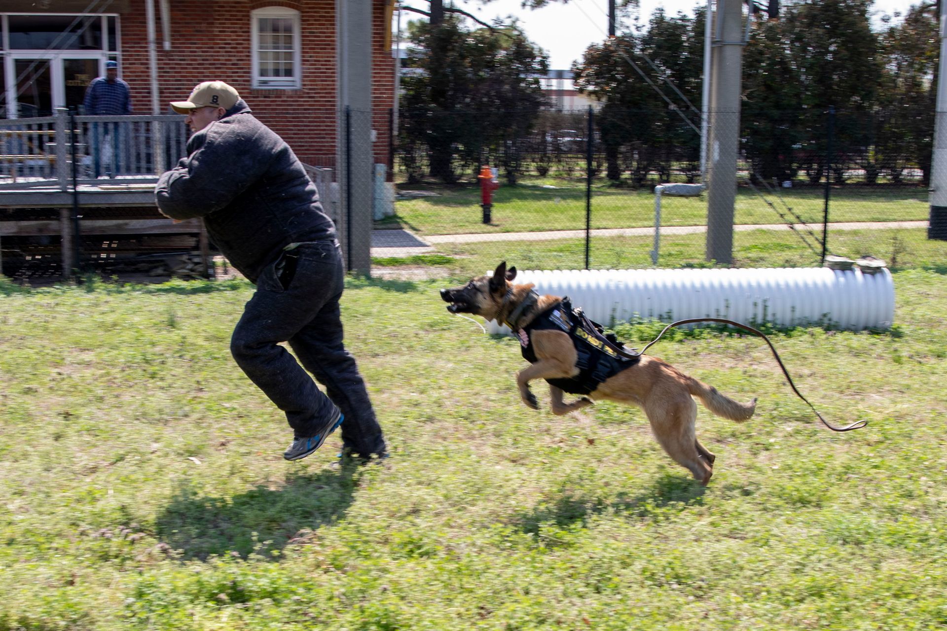 We recorded a film that laid out the history of illustrious service of MWDs, which was played at both events. We also helped coordinate a dog team demonstration to showcase the capabilities of our nation’s MWDs. Events like this only stand to strengthen the depth of understanding for what our K-9s bring to the fight. Thank you to the whole team at USS Bougainville for highlighting MWDs in this way.