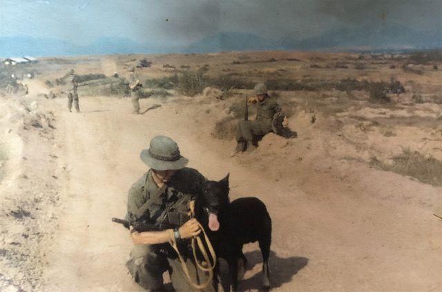 Robert joined the 59th Infantry Platoon Scout Dog after the platoon had suffered heavy losses of both handlers and dogs in 1969. Attached to the 11th Infantry Brigade of the American Division, his team was stationed at Landing Zone Bronco which was near the village of Duc Pho in I Corps. This is where Robert was introduced to his scout dog, Ted.
